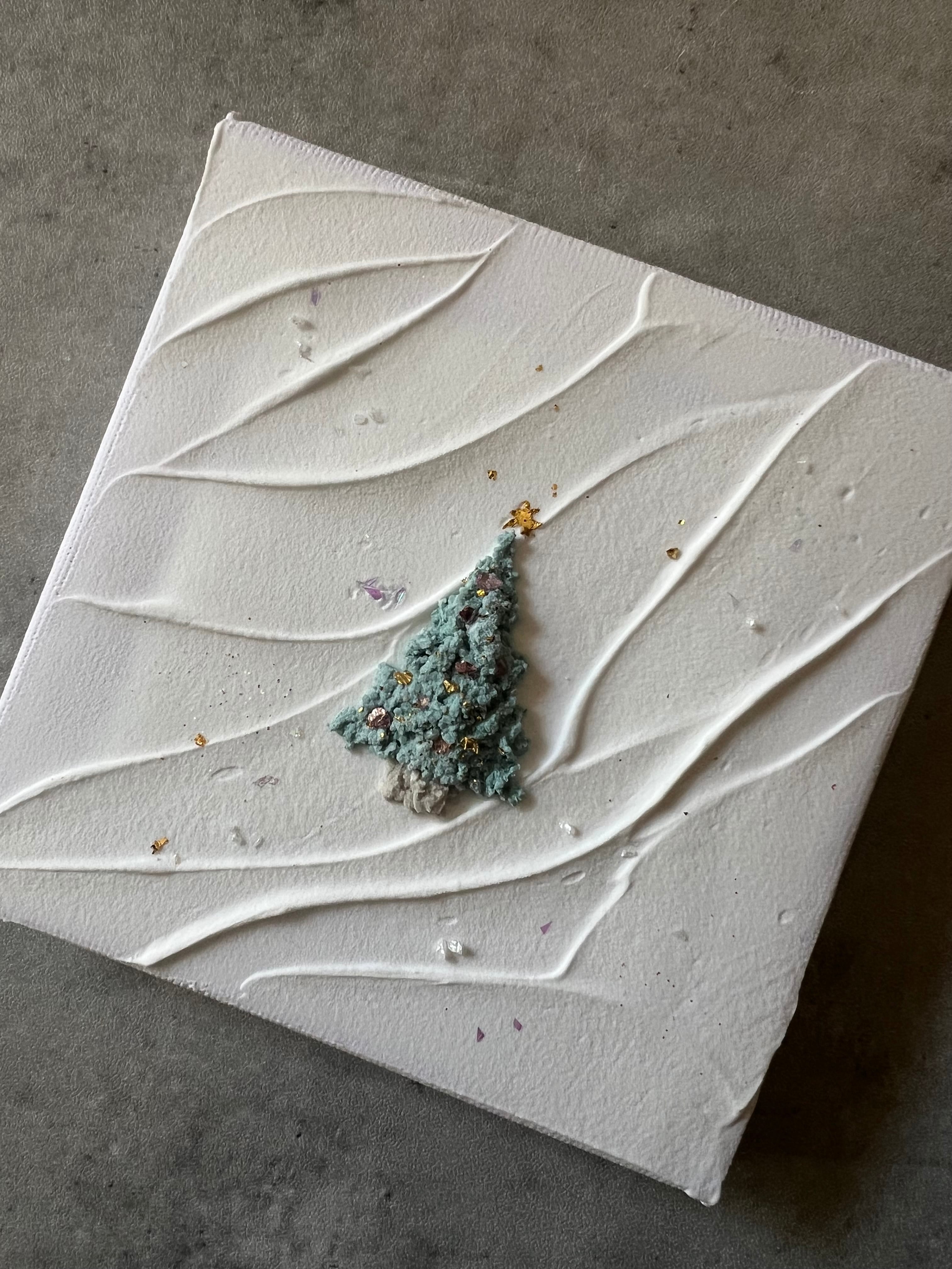 小さなツリーを描いてクリスマスや雪をイメージしたテクスチャーアートです。